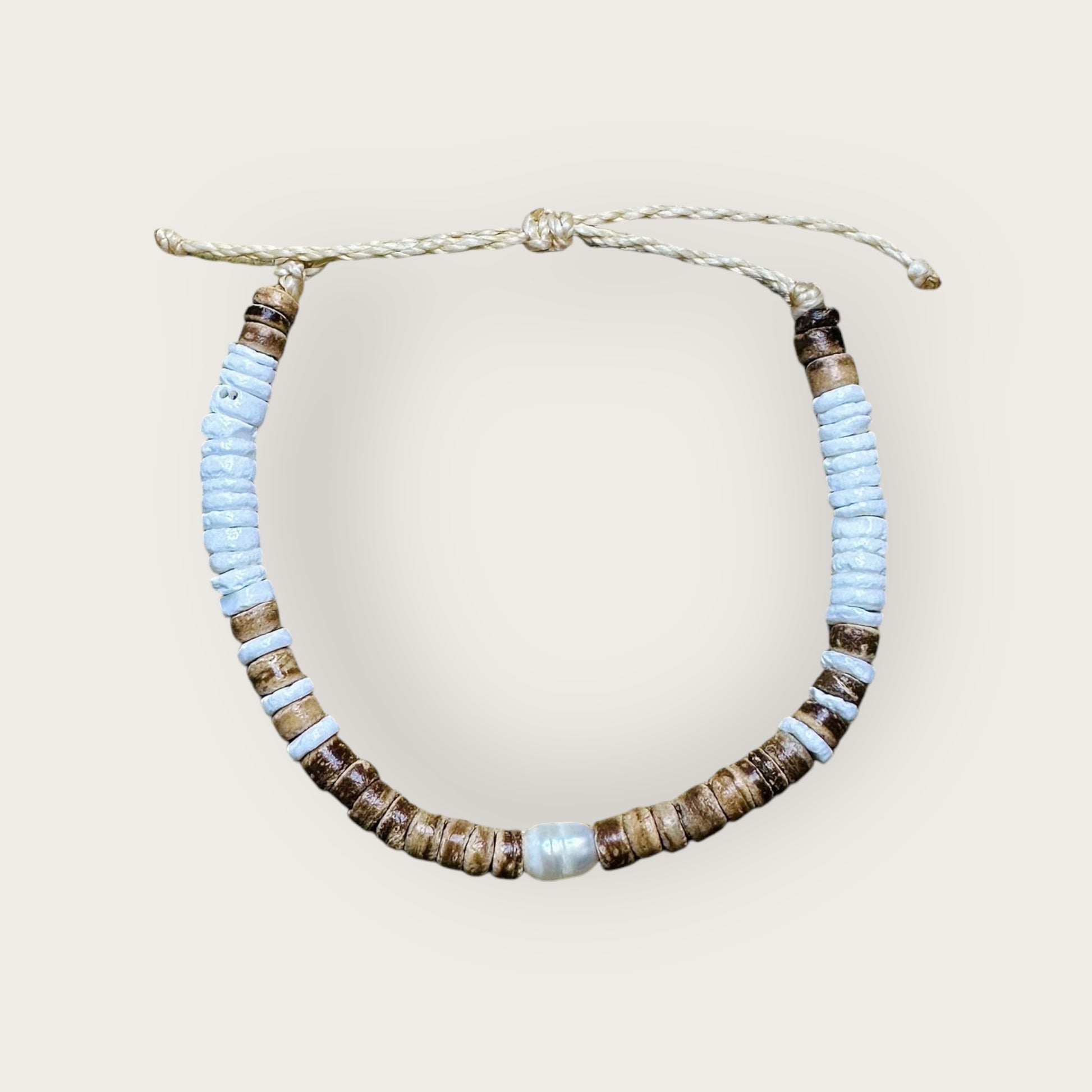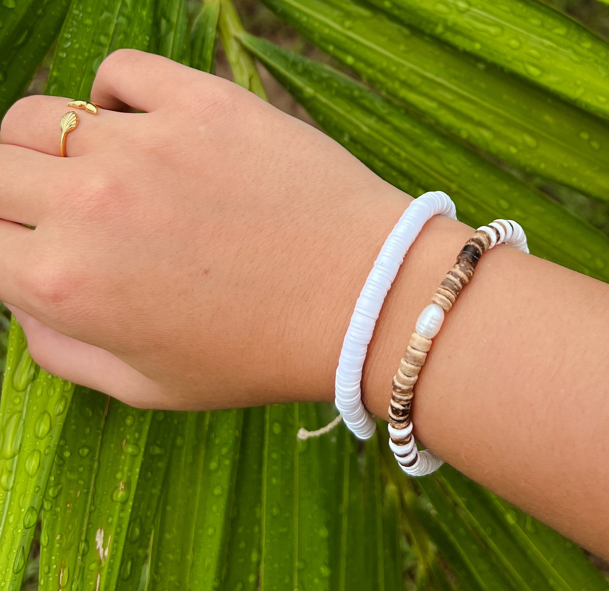 Our Canggu Bracelet is one of our bestsellers! Featuring natural shells and pearl, this style is sure to be stand out on your summer adventure. Wear this on your casual day or dress it up for a signature beachy feel.