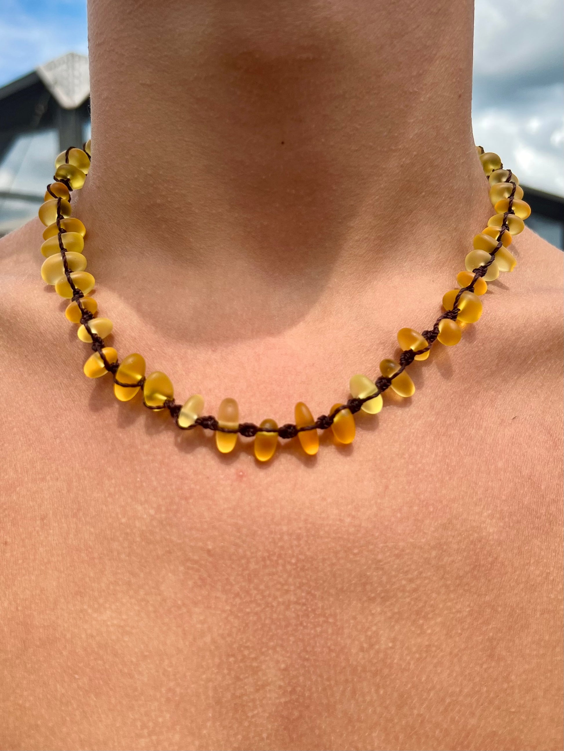 Our new sea glass necklaces are the must have style of the summer! Featuring stunning sea glass and a macrame design, this statement piece is made to stand out on your summer adventure. Wear this on your casual day or dress it up for a signature beachy feel.