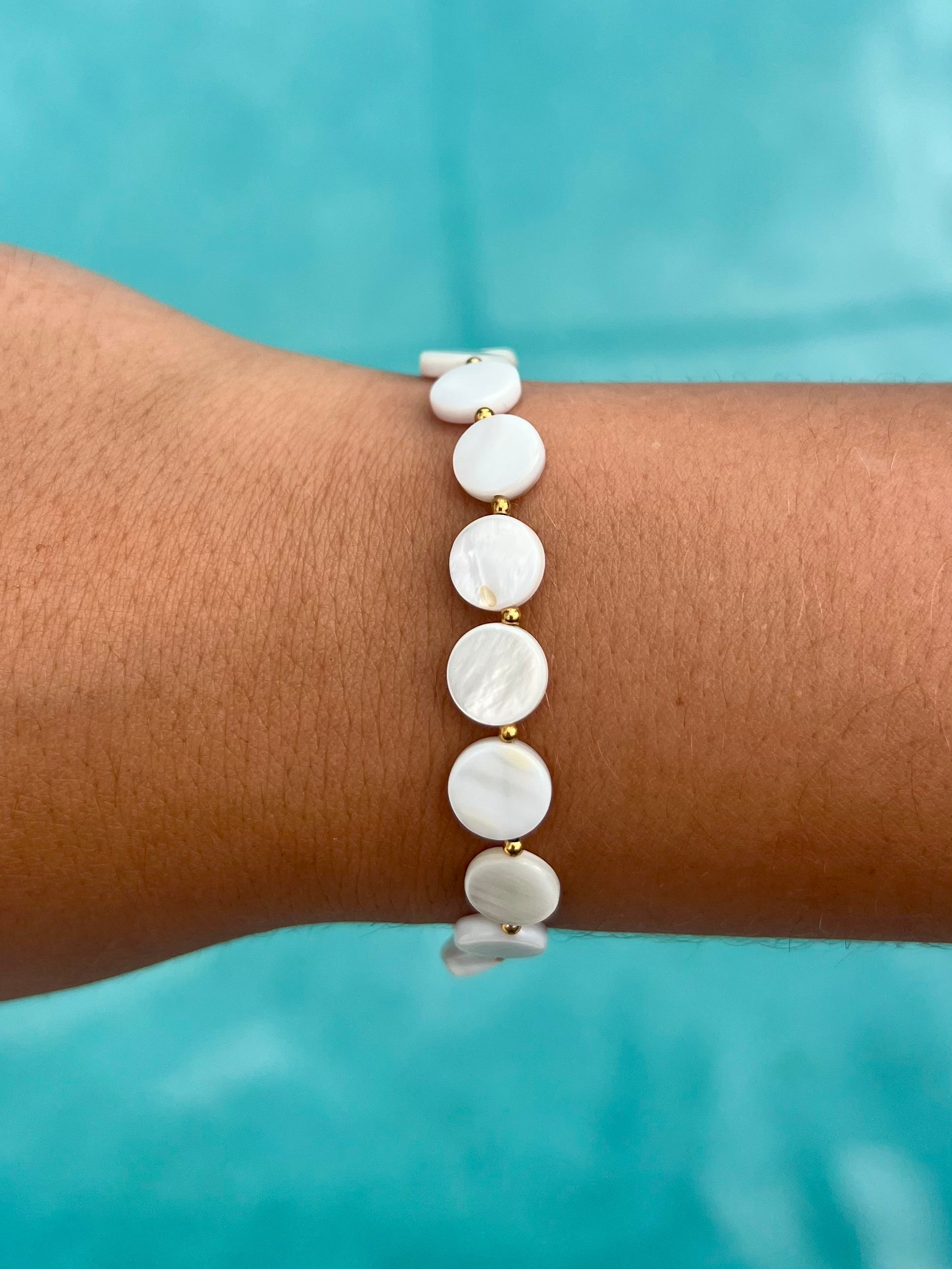 Our Maia Bracelet is one of our top sellers. This laidback style featuring dainty gold accents and stunning mother of pearl is the perfect everyday piece. Elegant on its own and the perfect piece to stack with other HALT favorites.