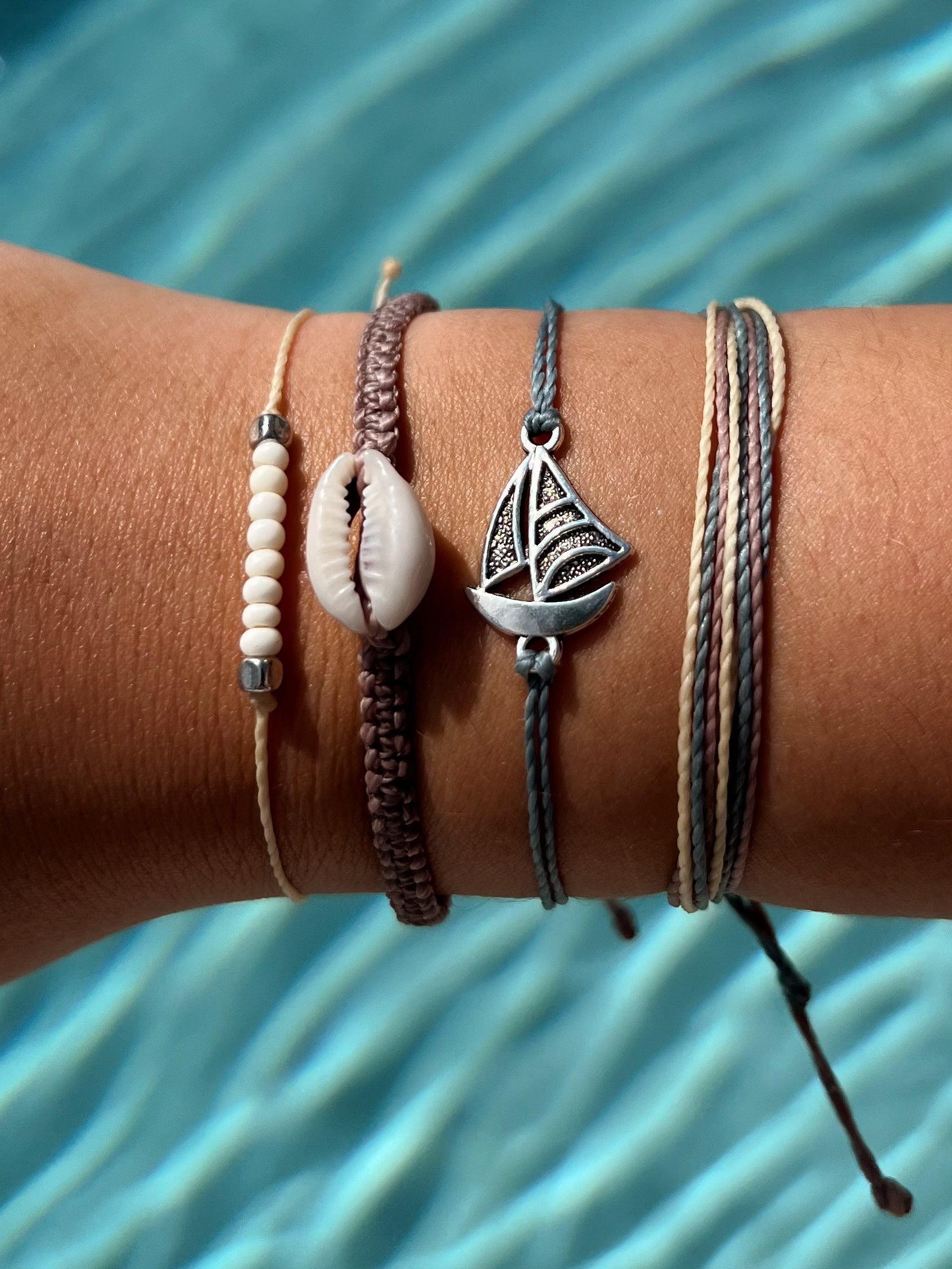 Bring the fun in this Nauti Bracelet Stack! Bring back the summertime vibes of being out on the water in this cool set, featuring muted coastal tones and beachy accents.