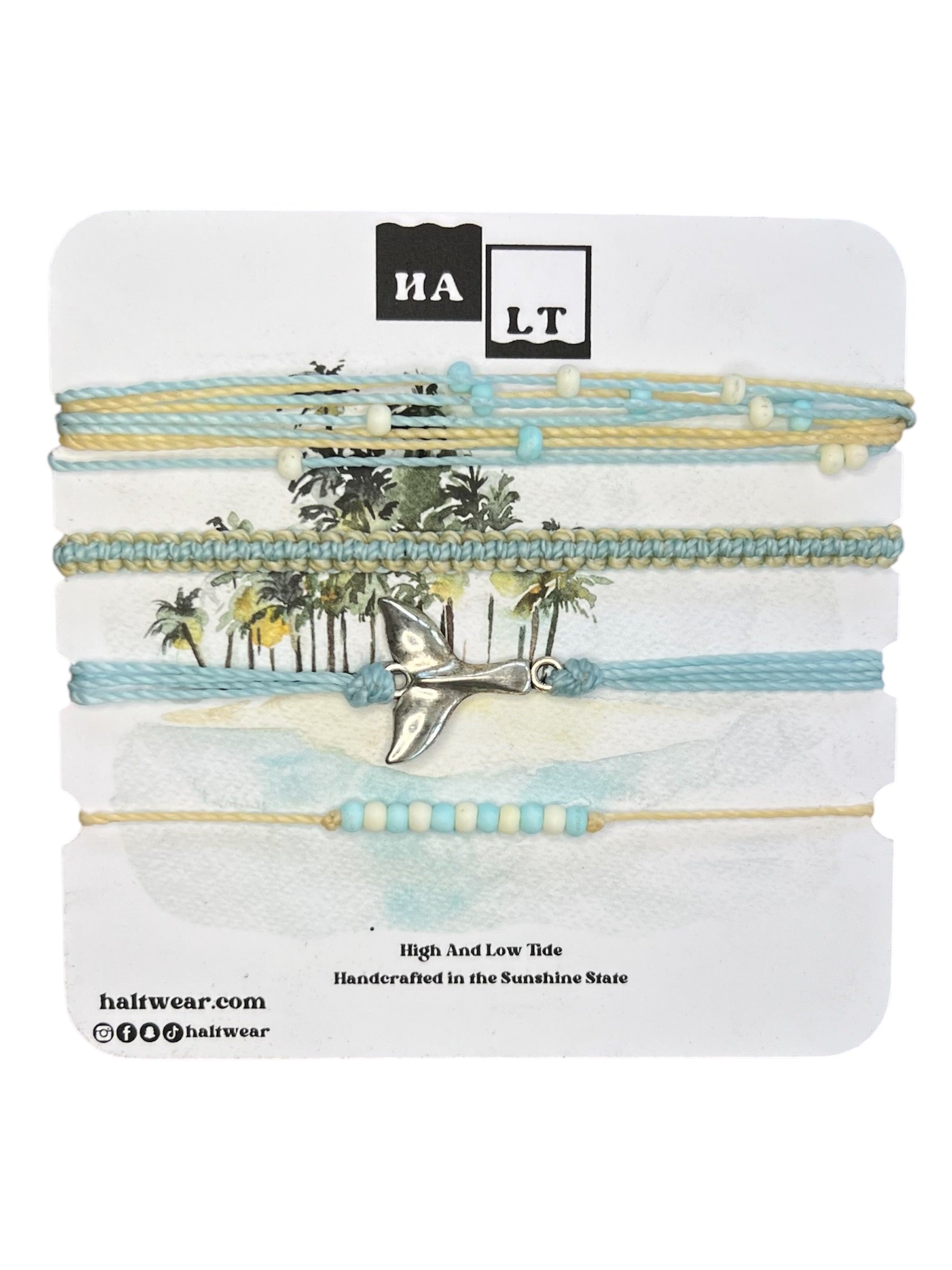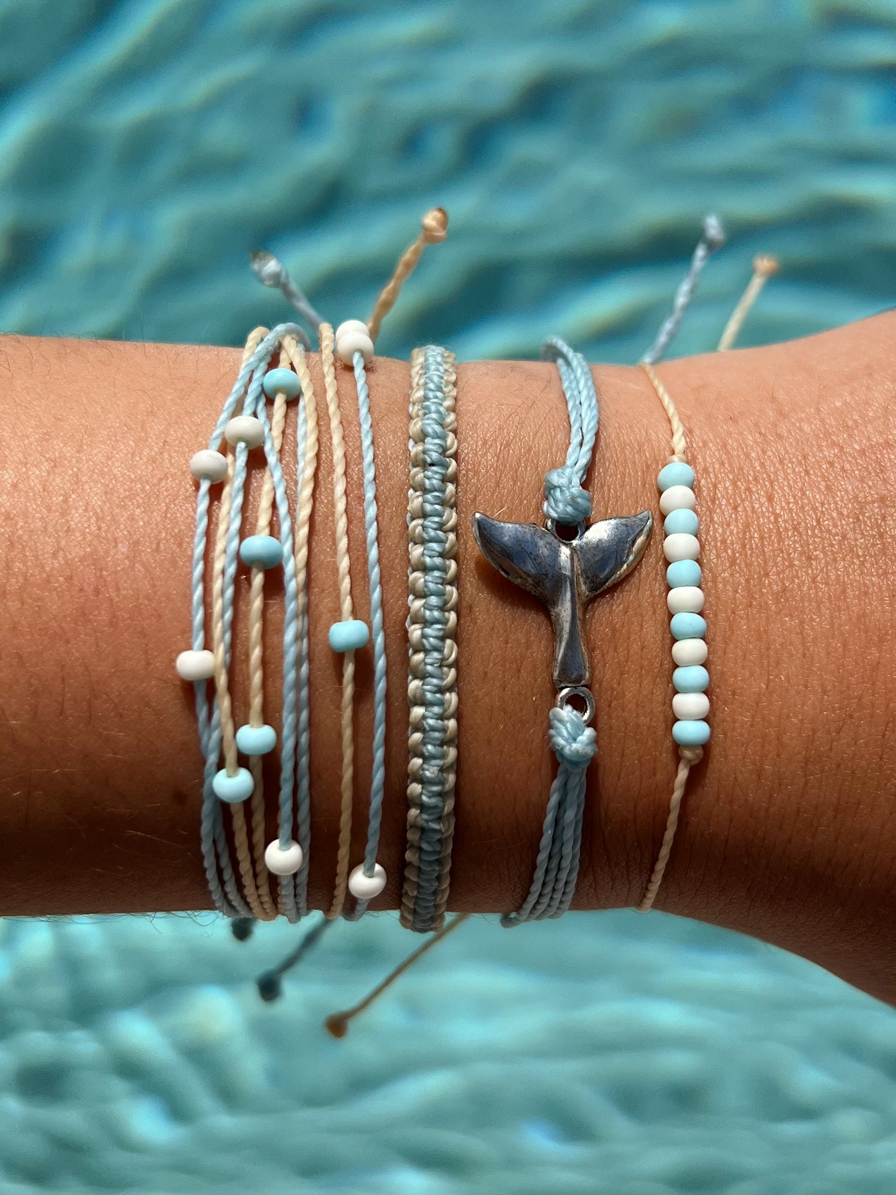 Adorn your wrist in everything beachy with our Whale Bracelet Stack! This set features a delicate whale tail charm and frosted ocean toned beads, making the perfect everyday style.