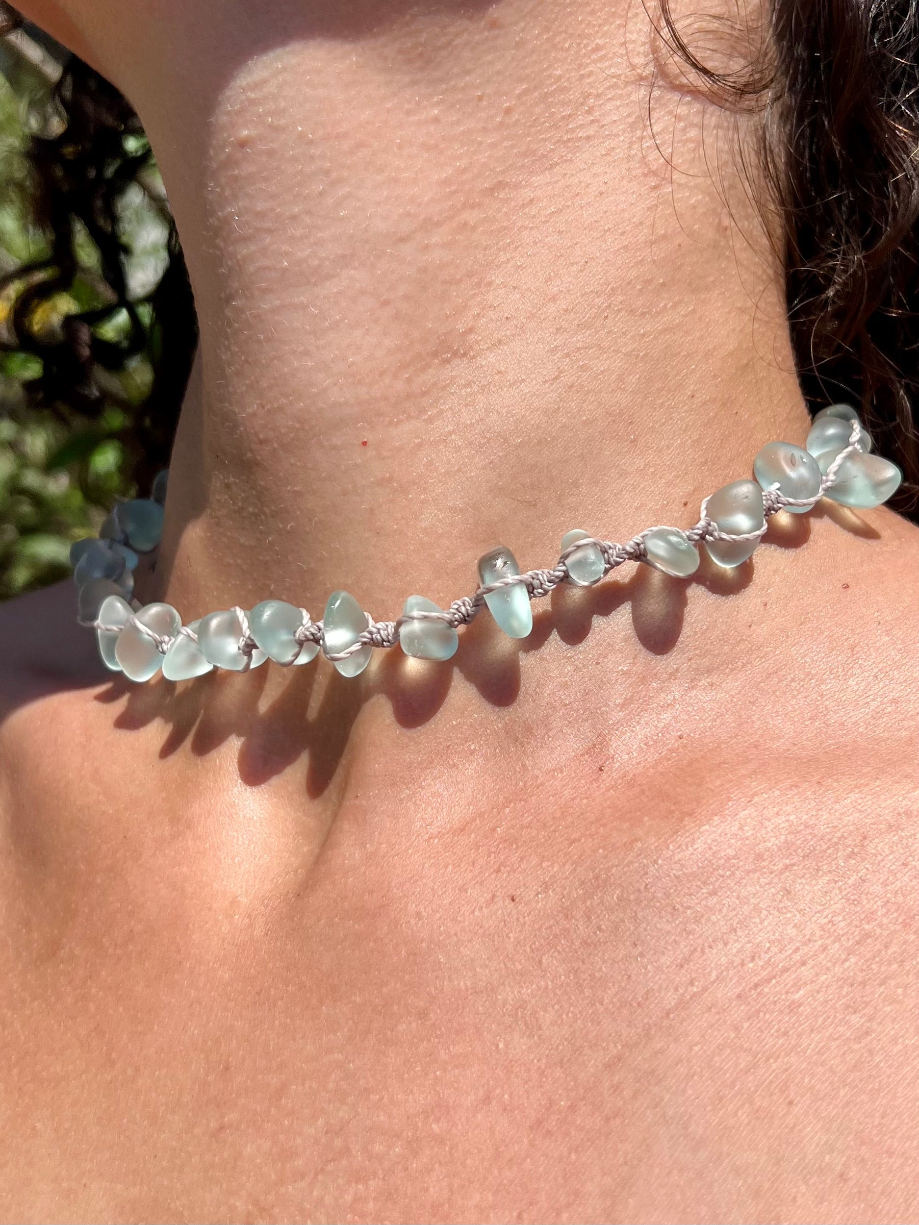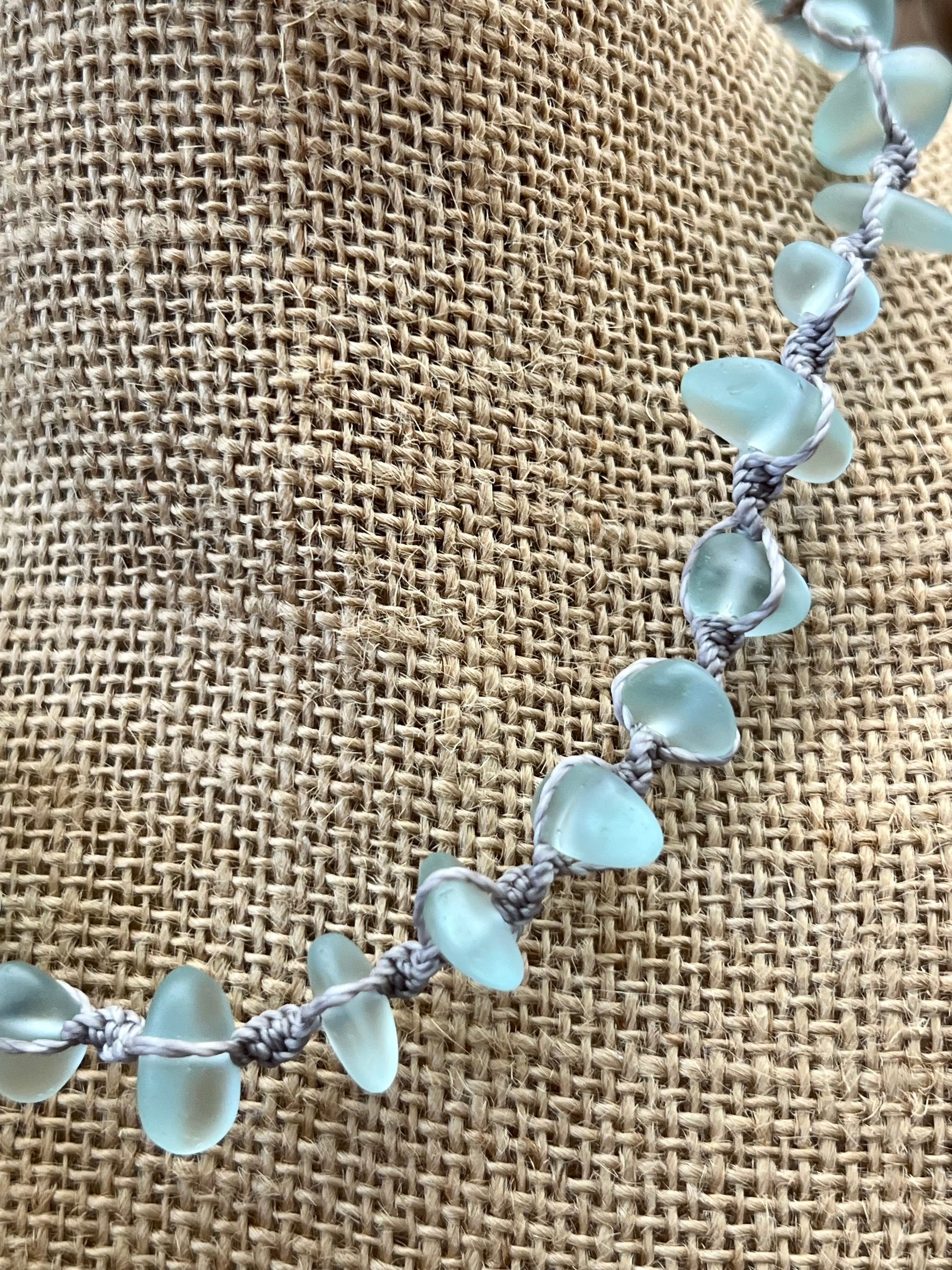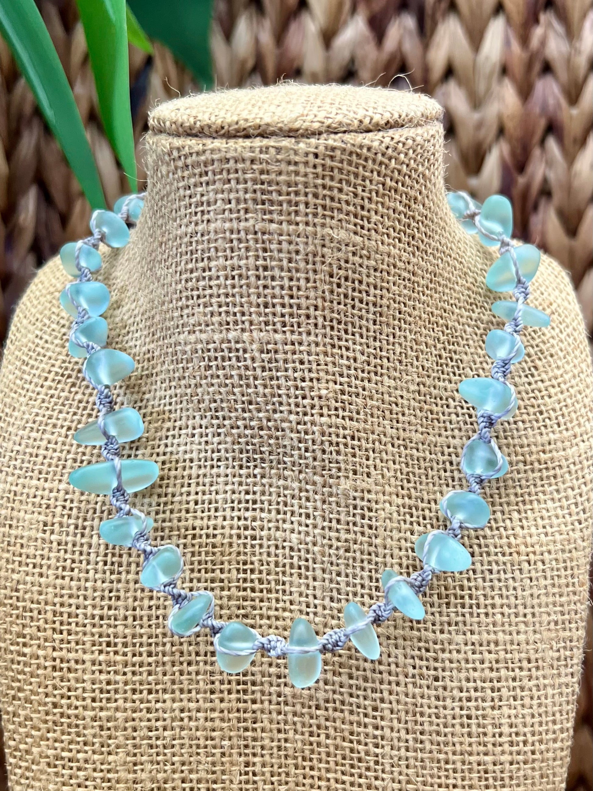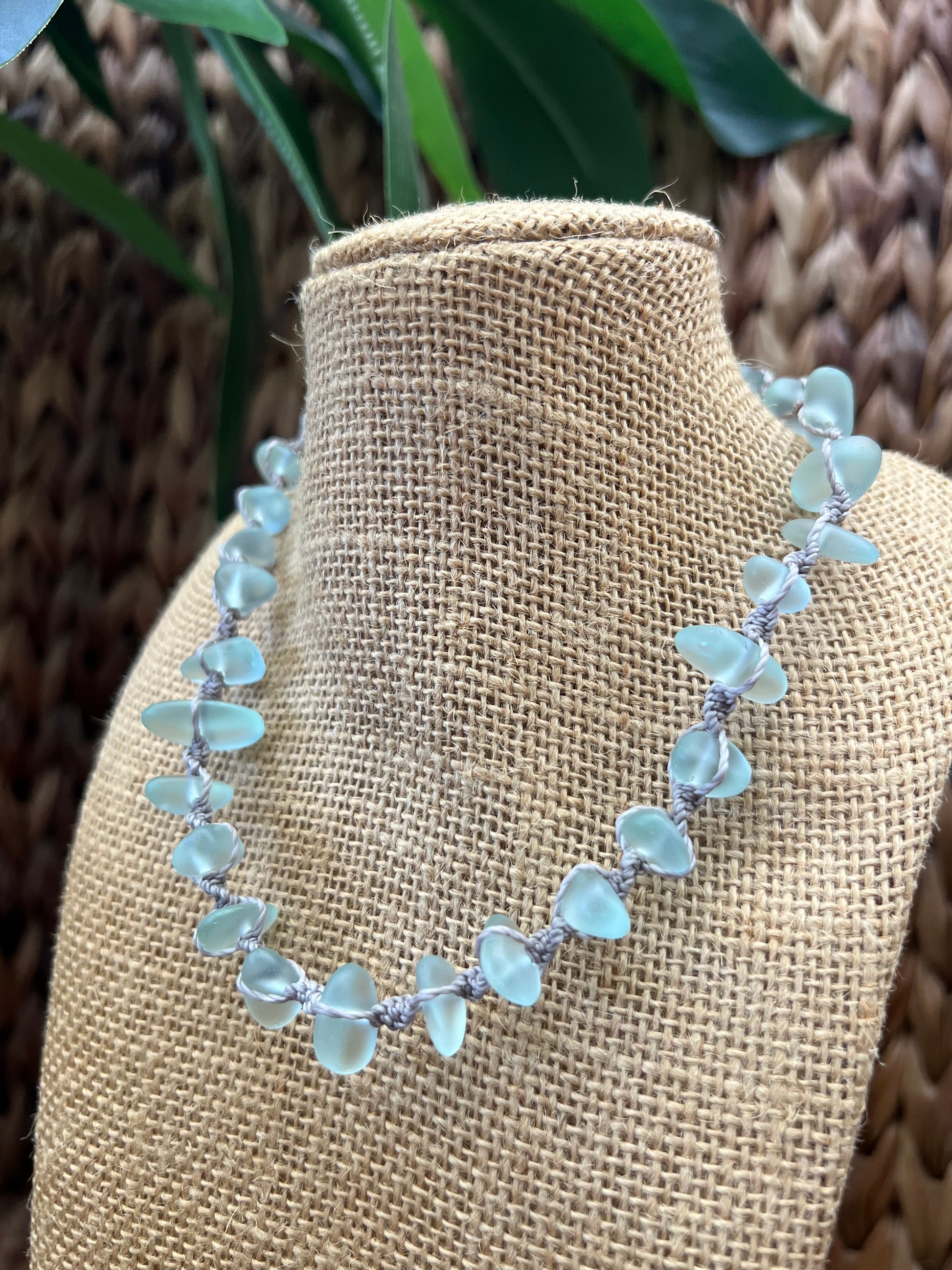 Our new sea glass necklaces are the must have style of the summer! Featuring stunning sea glass and a macrame design, this statement piece is made to stand out on your summer adventure. Wear this on your casual day or dress it up for a signature beachy feel.