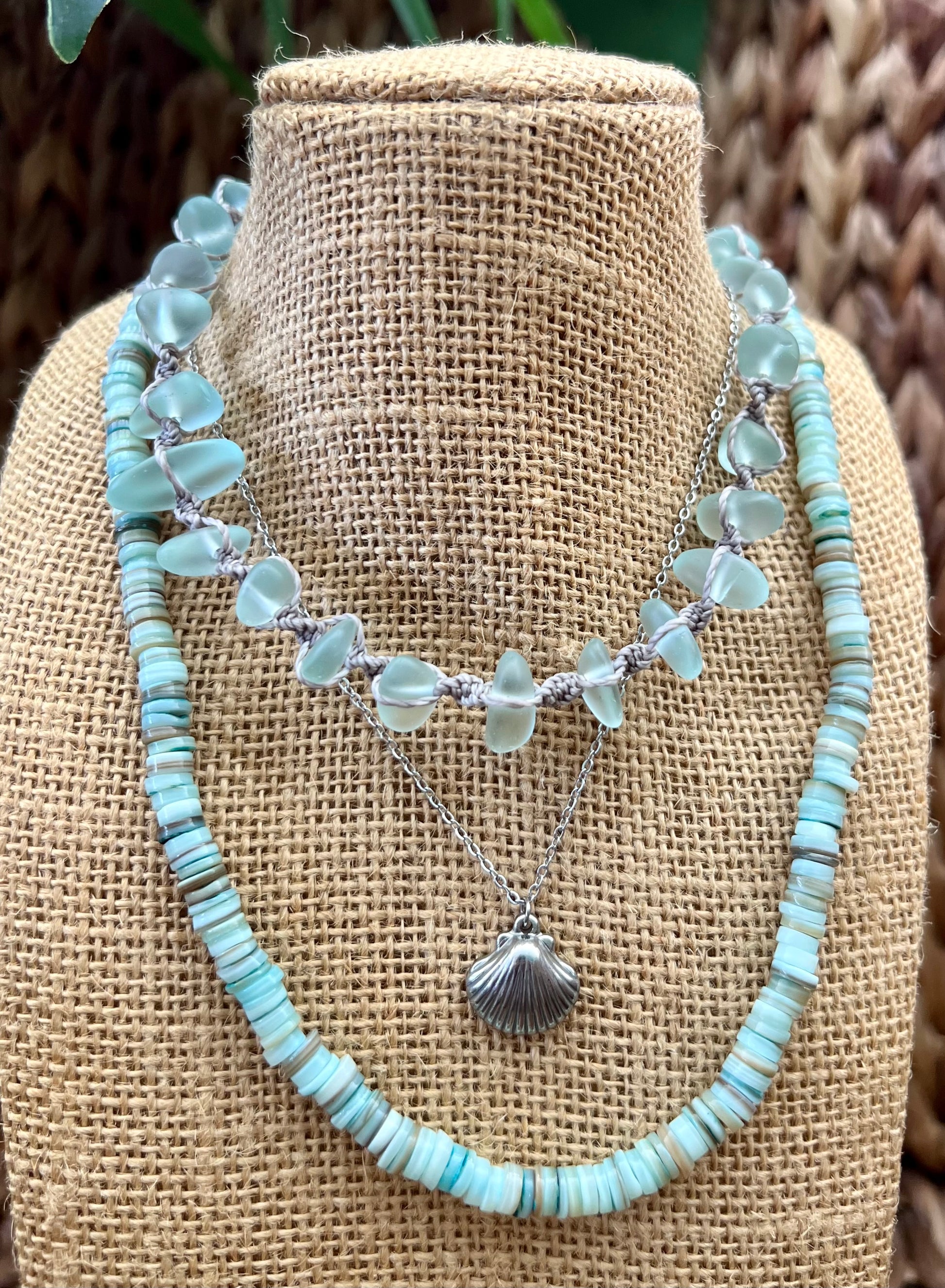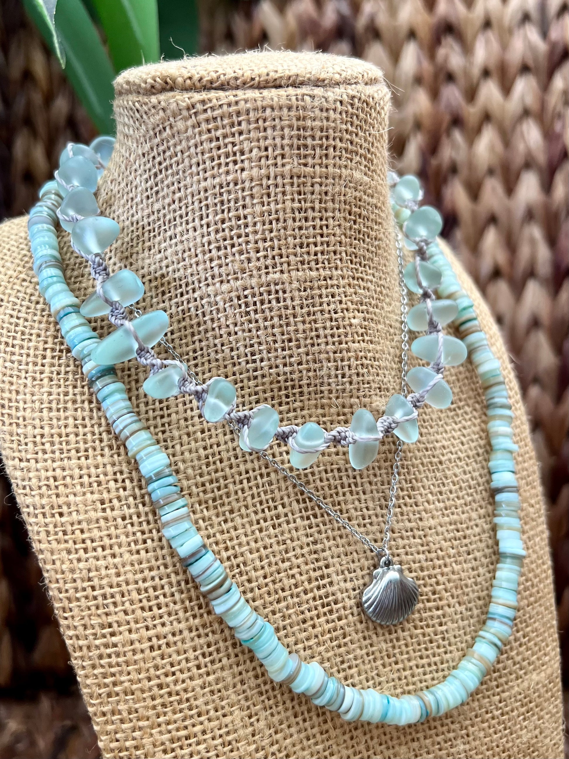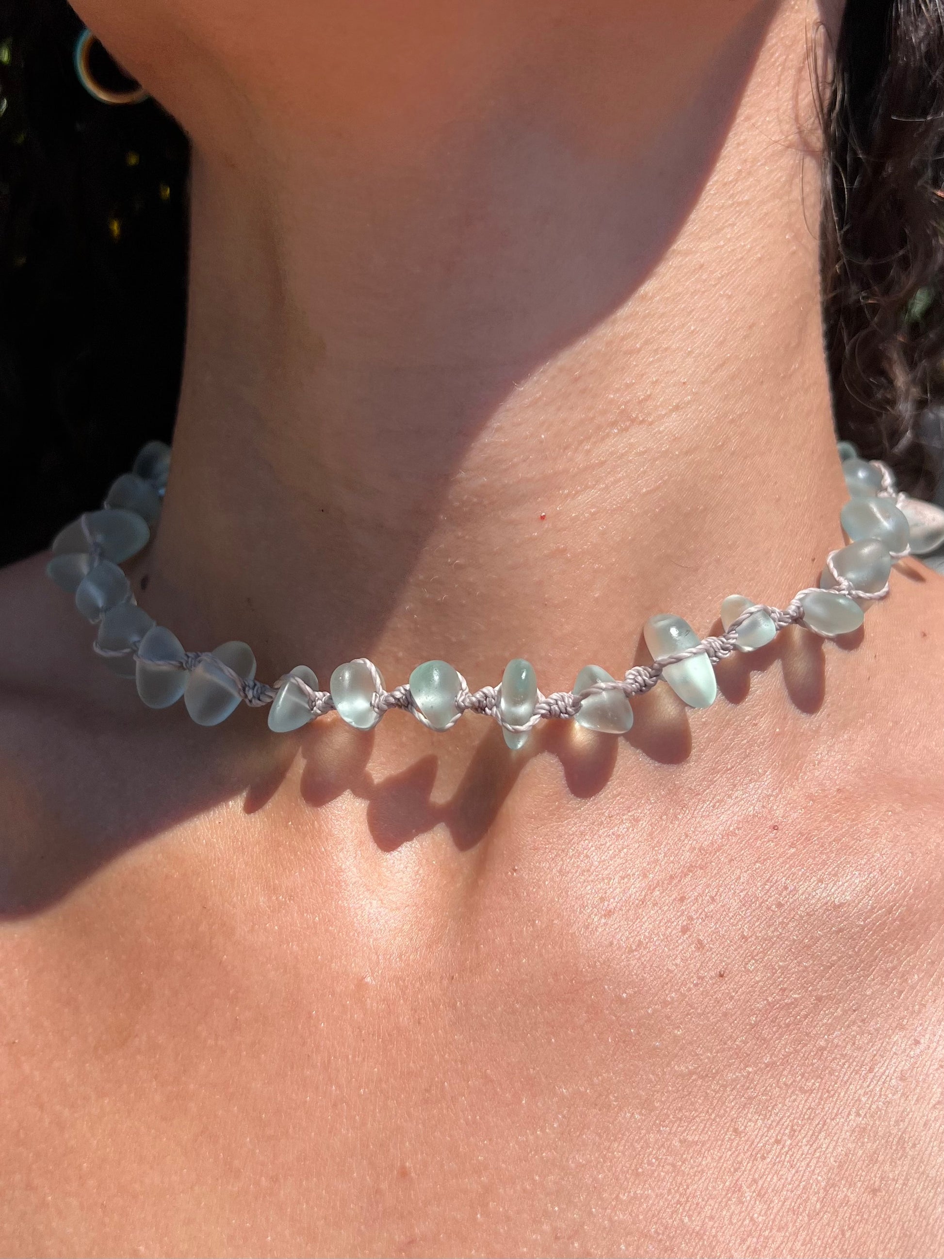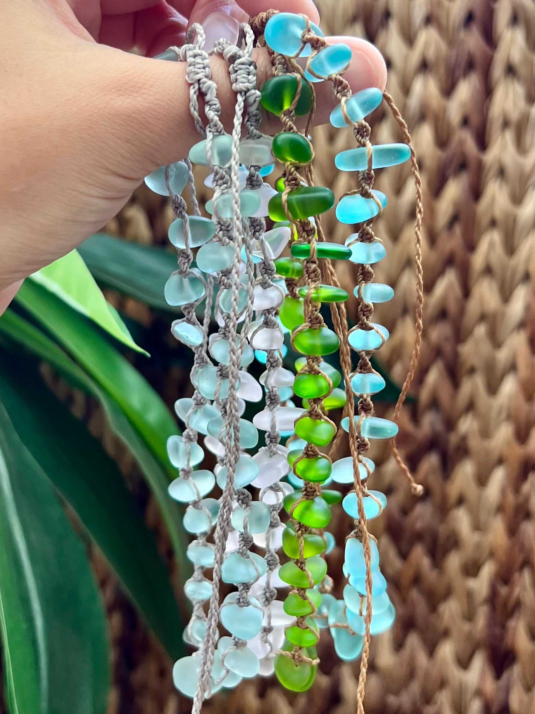 Our new sea glass necklaces are the must have style of the summer! Featuring stunning sea glass and a macrame design, this statement piece is made to stand out on your summer adventure. Wear this on your casual day or dress it up for a signature beachy feel.