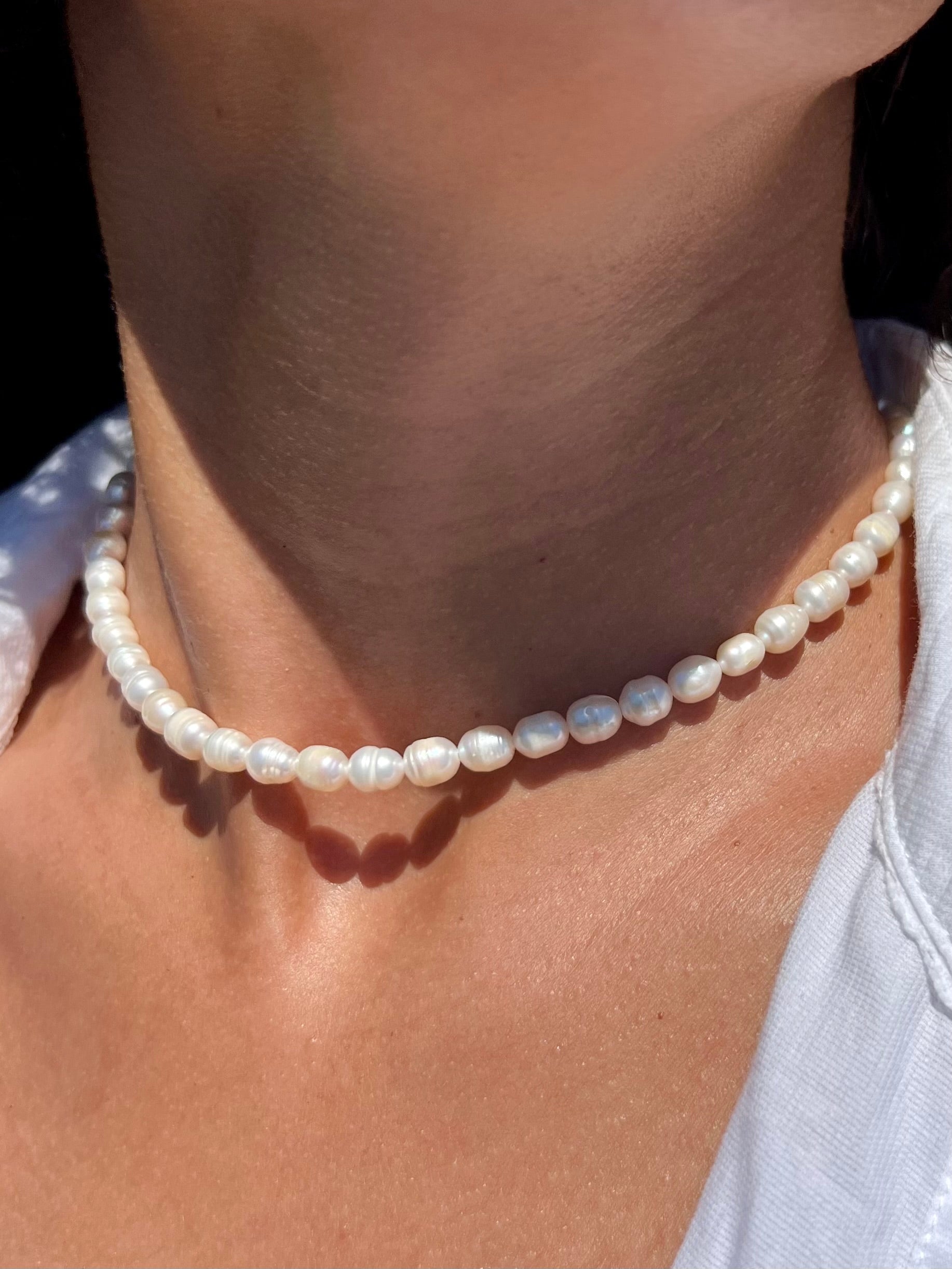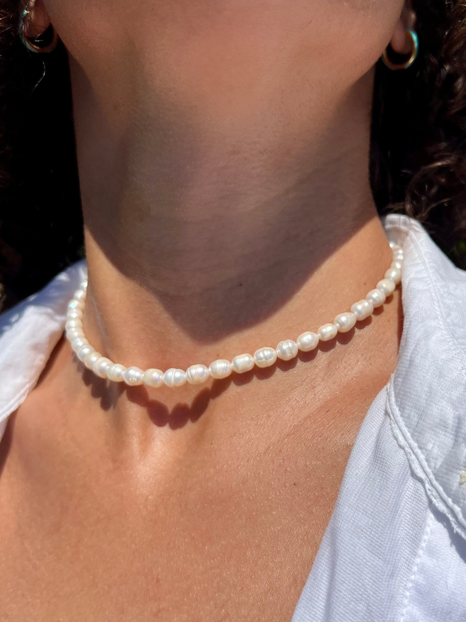 Our Kai Necklace is a classic statement piece. Made with beautiful freshwater pearls, this style is perfect for layering with your favorite coastal pieces.