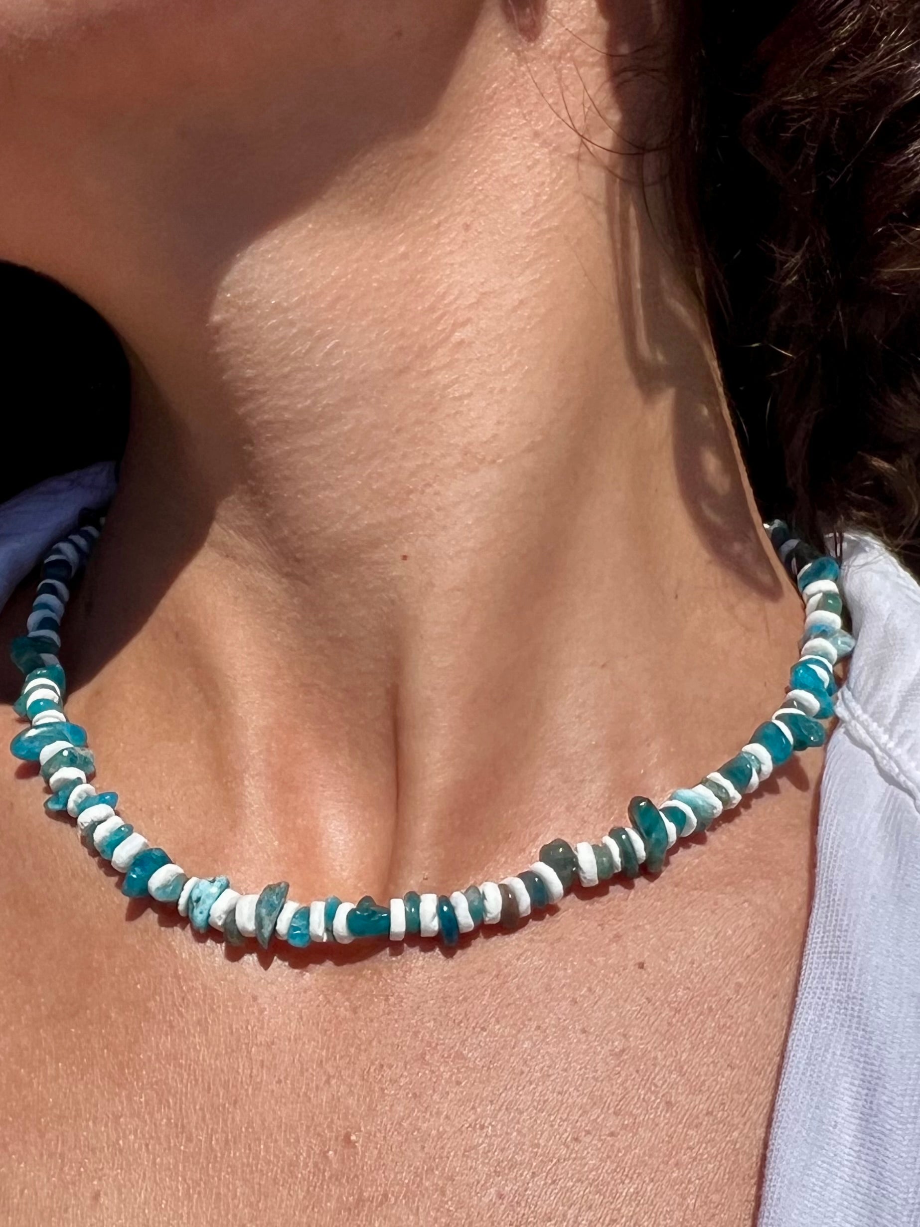 Get ready for your next adventure in style with our Tidepool Necklace. Featuring natural gemstones and puka shells in a balanced design, this style adds an oceanic feel to any outfit.